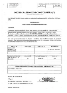 Desideriamo farvi presente che i ns. contenitori sono coperti da polizza assicurativa e documentazione di certificazione come da norme vigenti.