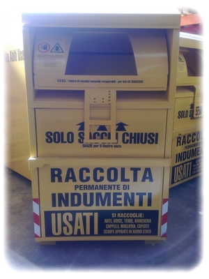 La Ditta S.O.N.E. ha predisposto uno speciale contenitore per la raccolta di indumenti smessi (abiti, scarpe, borse, cinture, ecc..) che offre in uso gratuito ai condomini di Milano, Pavia, Lodi e provincia.